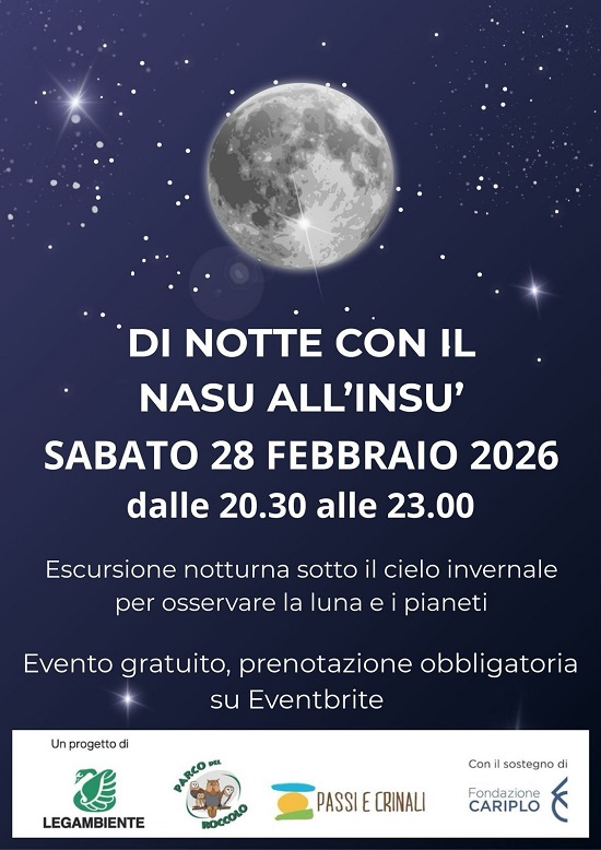 Il Parco del Roccolo propone "Con il naso all'insù": escursione notturna sotto il cielo invernale per osservare la Luna e le Stelle.