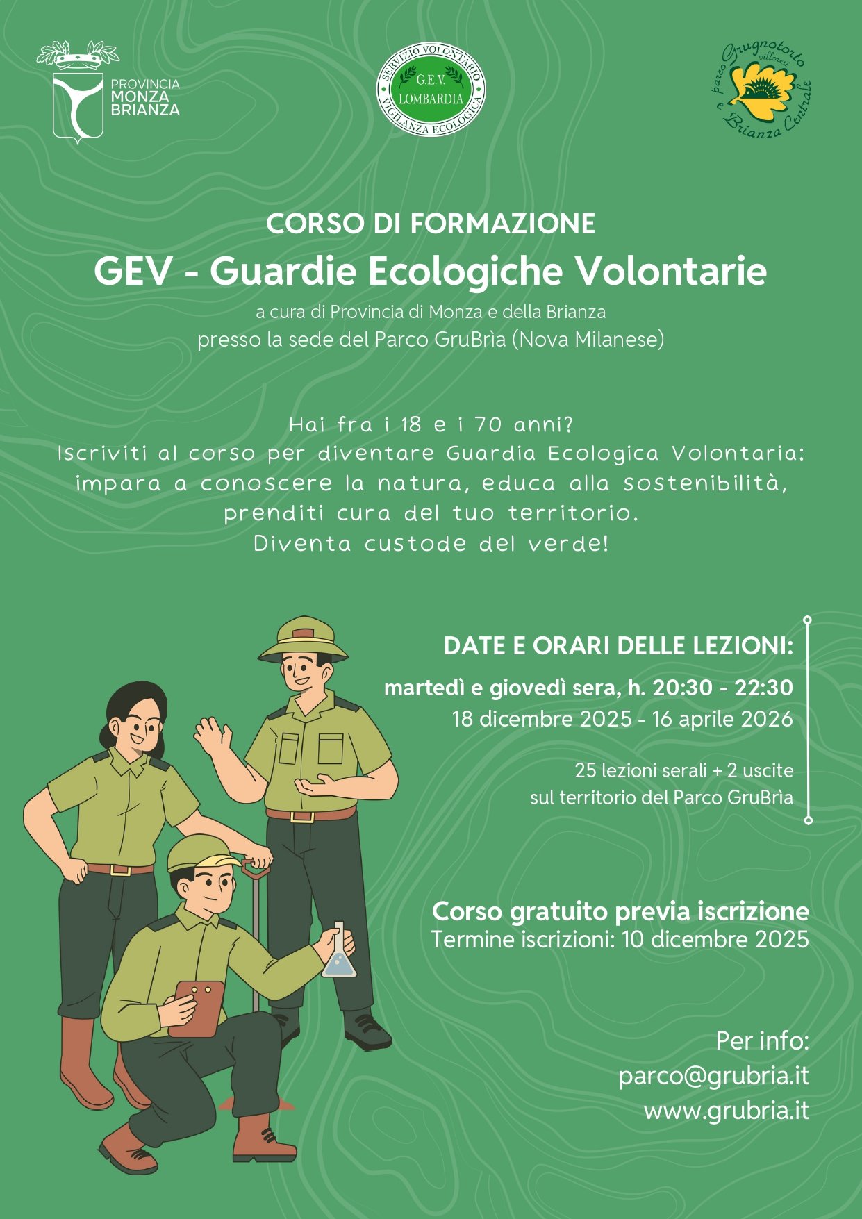 Parte a dicembre, presso la sede del Parco GruBrìa, il corso di formazione per Guardie Ecologiche Volontarie (GEV), organizzato dalla Provincia di Monza e della Brianza in collaborazione con il Parco GruBrìa.