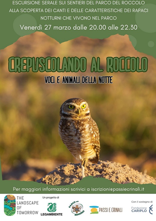 "Crepuscolando nel Roccolo - Voci e animali della Notte": escursione serale tra i sentieri del Parco del Roccolo alla scoperta dei rapaci notturni tipici di queste aree.