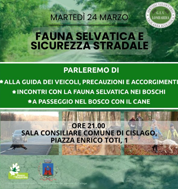 Il Parco del Bosco del Rugareto organizza una serata informativa, con le Gev Insubria Olona, sul tema della sicurezza stradale in aree con presenza di fauna selvatica.